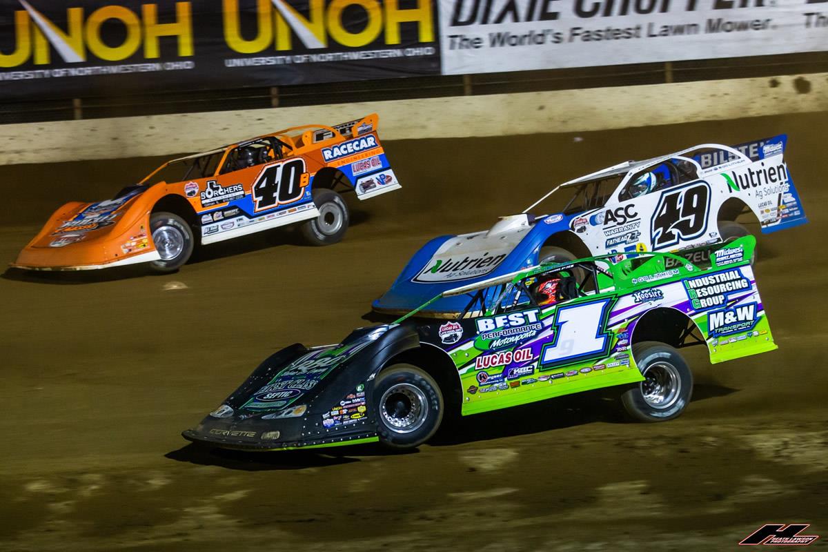Tyler Erb opened his Labor Day weekend on Saturday afternoon at Portsmouth Raceway Park (Portsmouth, Ohio) for the Lucas Oil Late Model Dirt Series (LOLMDS) sanctioned Pepsi River Days Rumble 50. With 29 Late Models entered, Erb clocked in fifth fastest in his group before placing second in his heat. Starting the $15,000-to-win A-Main in sixth, Tyler was challenging for second late in the race but dropped back to fourth when the checkered flag flew. He followed Tim McCreadie, Devin Moran, and Ricky Thornton Jr. across the line with Jimmy Ownes coming in fifth. (Heath Lawson photo)