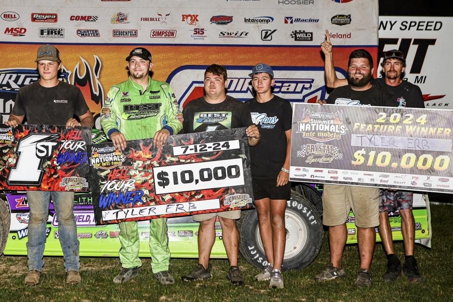 In a repeat victory on Friday evening at Crystal Motor Speedway (Crystal, Mich.), Erb drove underneath leader Dona Marcoullier on lap 36 of the feature and led the final four circuits to claim the $10,000 top prize.