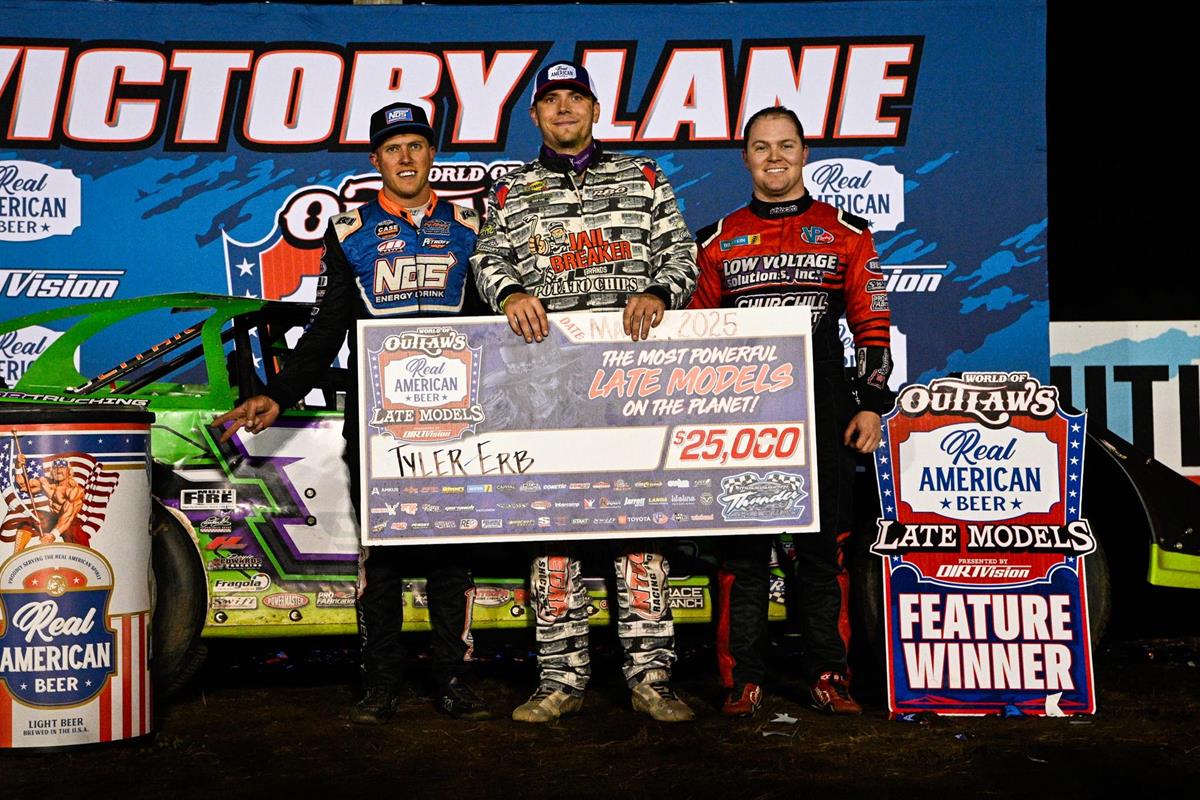 ST. MARYS, Ohio (05/05/25) – Tyler Erb made a triumphant return to World of Outlaws Real American Beer Late Model Series Victory Lane on Friday, snapping a winless stretch that dated back to April 22, 2022.